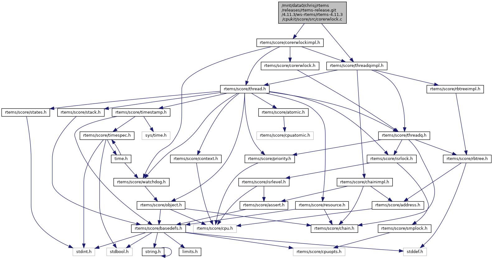 Include dependency graph for corerwlock.c: