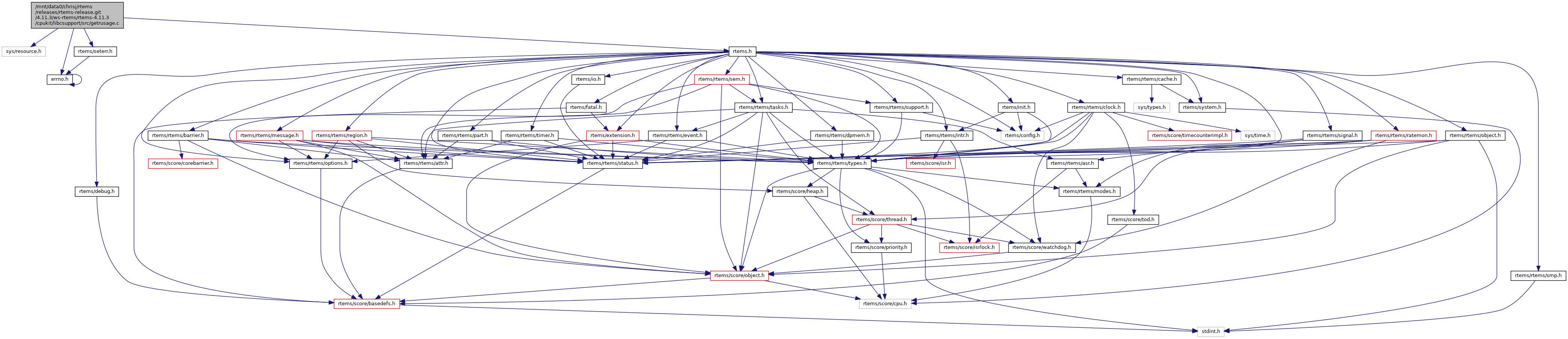 Include dependency graph for getrusage.c: