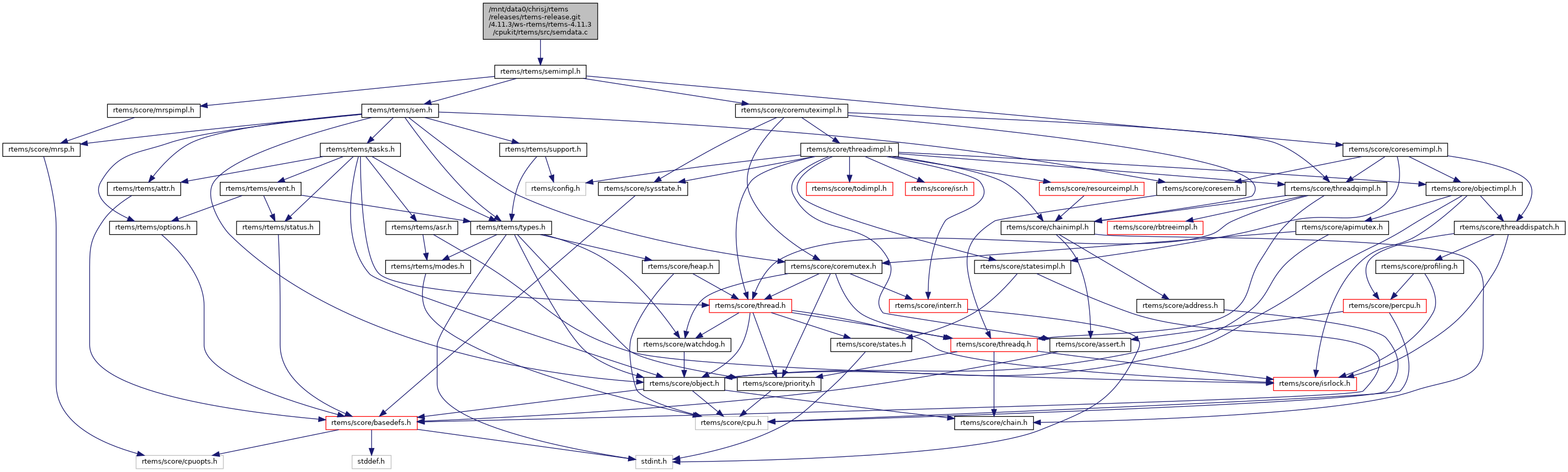 Include dependency graph for semdata.c: