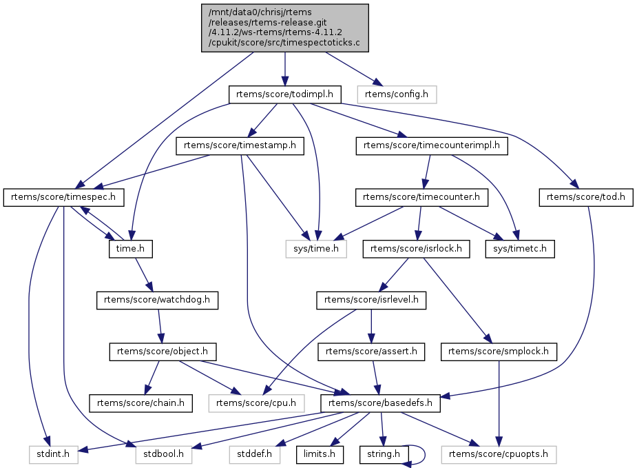 Include dependency graph for timespectoticks.c:
